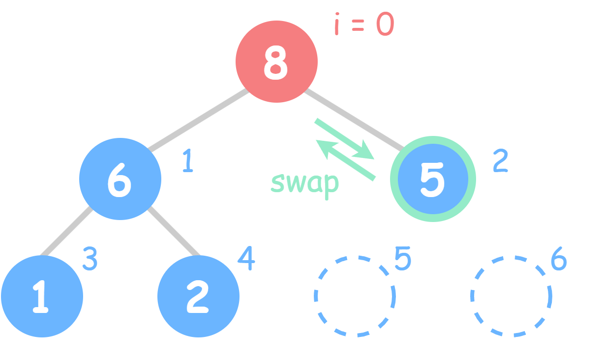 第三步:重复第二步骤,直至所有节点满足“父节点数值均大于子节点”。