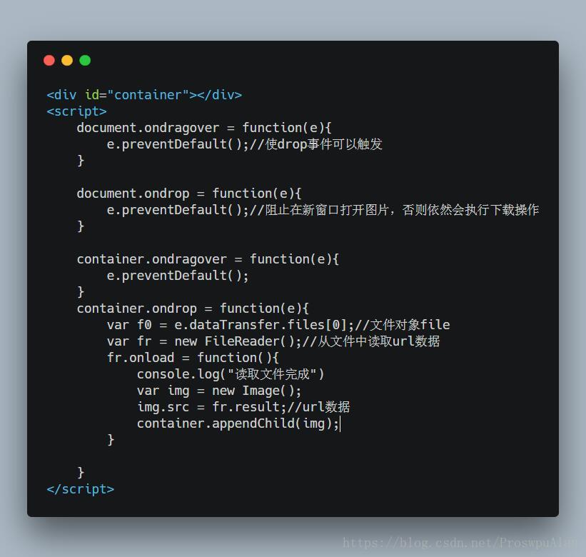 4.拖拽API:(直接拖拽一张图片到浏览器中显示):