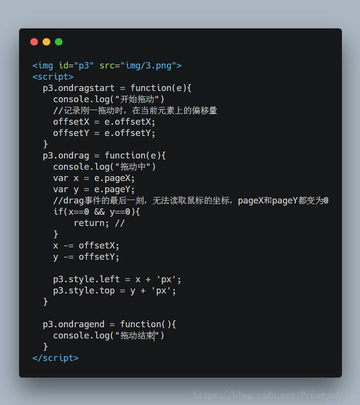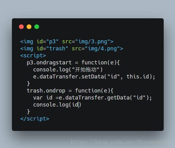 3.拖动的源对象事件和目标对象事件间传递数据: