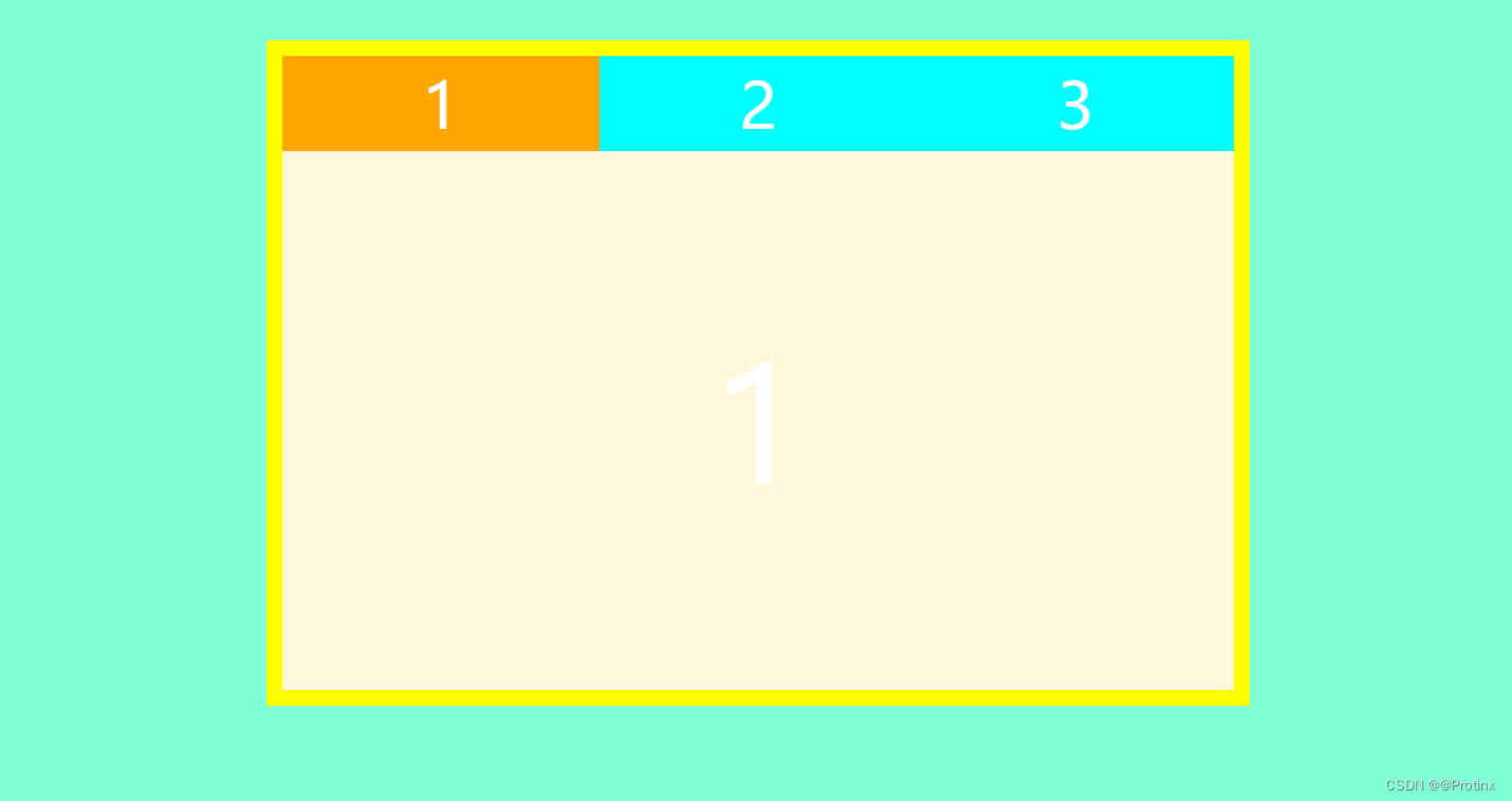 <!DOCTYPE html> <html lang="en"> <head> <meta charset="UTF-8"> <meta name="viewport" content="width=device-width, initial-scale=1.0" > <meta http-equiv="X-UA-Compatible" content="ie=edge" > <title>基于html、css、javascript的选项卡</title> <style> * { margin: 0; padding: 0; } body { background-color: aquamarine; } ul, ol, li { list-style: none; } .tab { width: 600px; height: 400px; border: 10px solid yellow; margin: 50px auto; display: flex; flex-direction: column; } ul { height: 60px; display: flex; } ul>li { flex: 1; display: flex; justify-content: center; align-items: center; font-size: 40px; color: #fff; background-color: cyan; cursor: pointer; } ul>li.active { background-color: orange; } ol { flex: 1; position: relative; } ol>li { position: absolute; left: 0; top: 0; width: 100%; height: 100%; font-size: 100px; color: #fff; background-color: cornsilk; display: none; justify-content: center; align-items: center; } ol>li.active { display: flex; } </style> </head> <body> <div class="tab"> <ul> <li class="active">1</li> <li>2</li> <li>3</li> </ul> <ol> <li class="active">1</li> <li>2</li> <li>3</li> </ol> </div> <script> function Tabs(ele) { this.ele = document.querySelector(ele) this.btns = this.ele.querySelectorAll('ul > li') this.tabs = this.ele.querySelectorAll('ol > li') } Tabs.prototype.change = function () { var _this = this for (var i = 0; i < this.btns.length; i++) { this.btns[i].setAttribute('index', i) this.btns[i].addEventListener('click', function () { for (var j = 0; j < _this.btns.length; j++) { _this.btns[j].className = '' _this.tabs[j].className = '' } this.className = 'active' var index = this.getAttribute('index') - 0 _this.tabs[index].className = 'active' }) } } var t = new Tabs('.tab') t.change() </script> </body> </html>