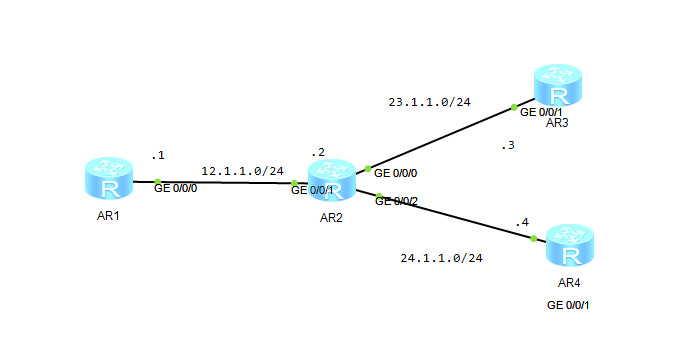 [AR2-GigabitEthernet0/0/2]ip address 24.1.1.2 24