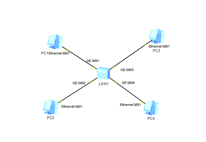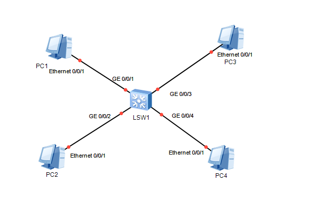 查看LSW1的MAC地址分别对应4台PC设备.