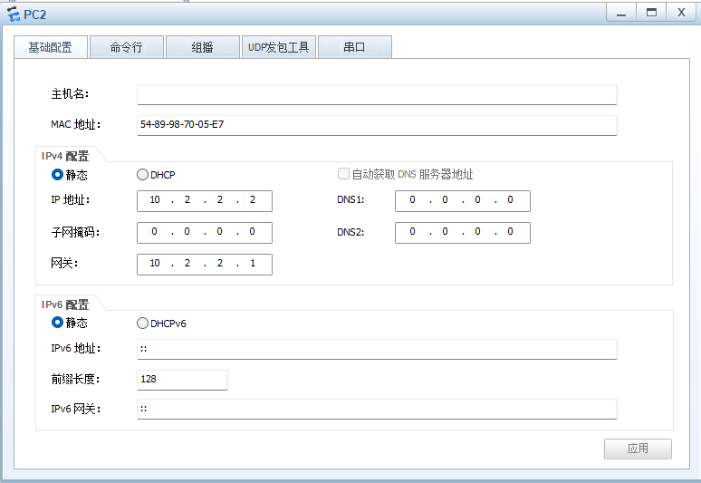 如图设置好PC1和PC2的网关和IP地址.