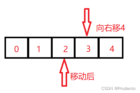 朝圈内+右移=(下标+右移量)%数组长度,如数组长为5,下标为3,右移4