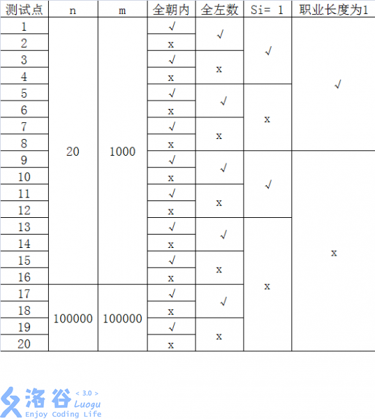 s= 1s=1:若为“√”,表示该测试点保证所有的指令都只数1个,即对任意的