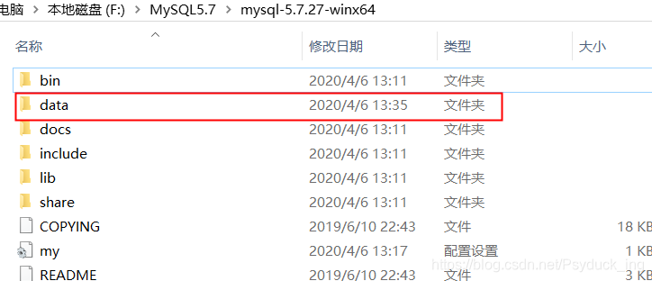 datadir=F:\MySQL5.7\mysql-5.7.27-winx64\data