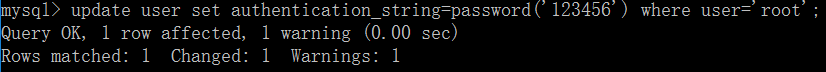 update user set authentication_string=password('123456') where user='root';