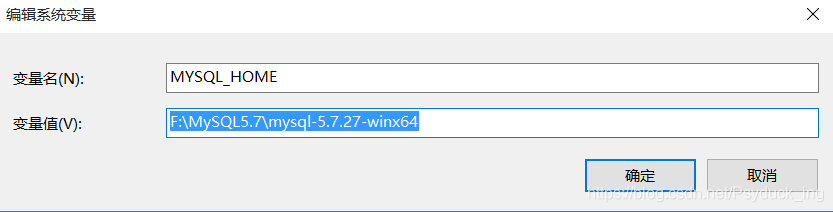 变量值: .如: F:\MySQL5.7\mysql-5.7.27-winx64 (MySQL安装目录)