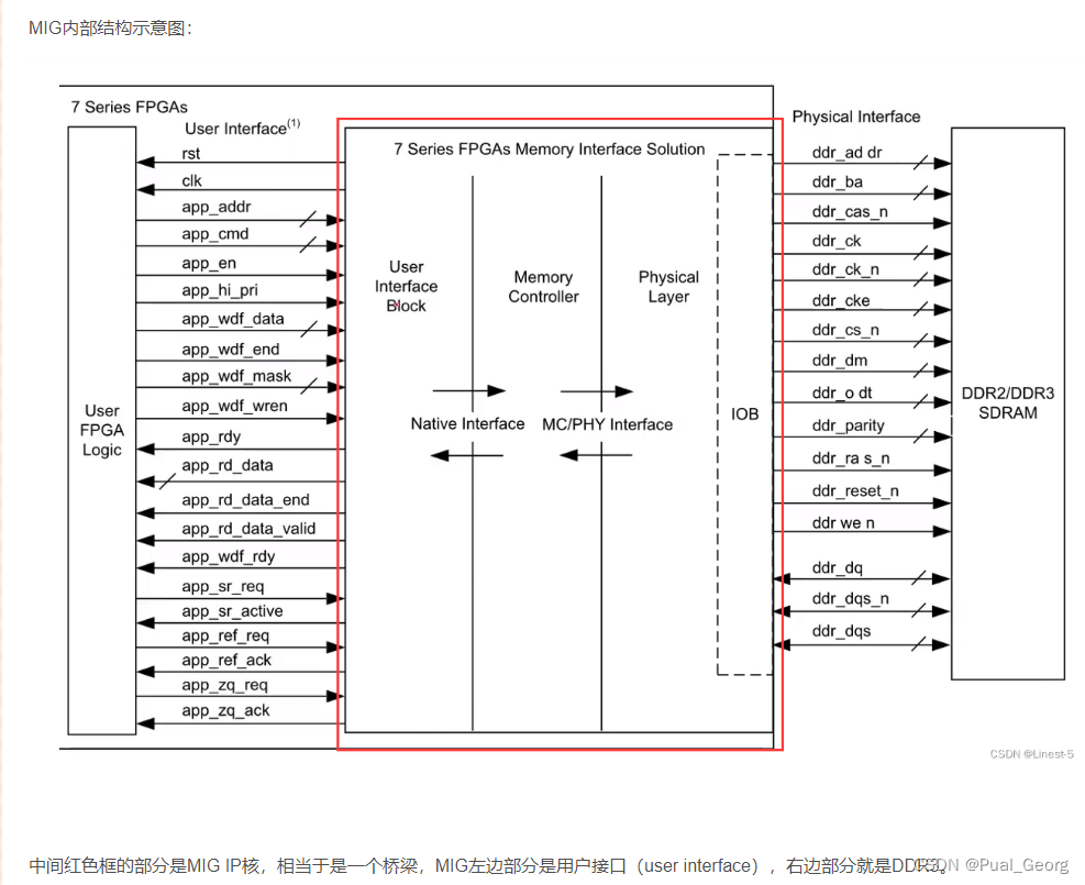 利用MIG核(上图红色部分)可以核DDR3芯片进行通信,我们只管USER FPGA logic部分就可以了。