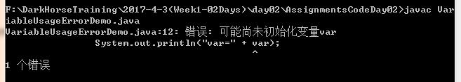 1 //[F:\JavaTraining\ElementaryClass\20170403Day02\AssignmentsCodeDay02\VariableUsageErrorDemo.java] 2 /* 3 错误: 可能尚未初始化变量var 4 int var; 5 System.out.println("var=" + var); 6 */