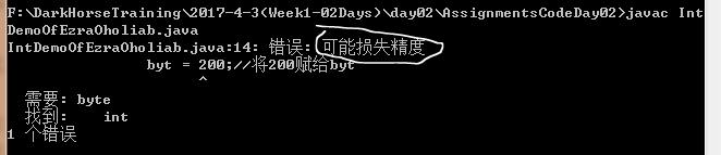 1 /** 2 //[F:\JavaTraining\ElementaryClass\20170403Day02\AssignmentsCodeDay02\ IntDemoOfEzraOholiab.java] 3 { 4 byt = 200;//将200赋给byt 5 System.out.println("byt=" + byt);//打印byt 6 } 7 */
