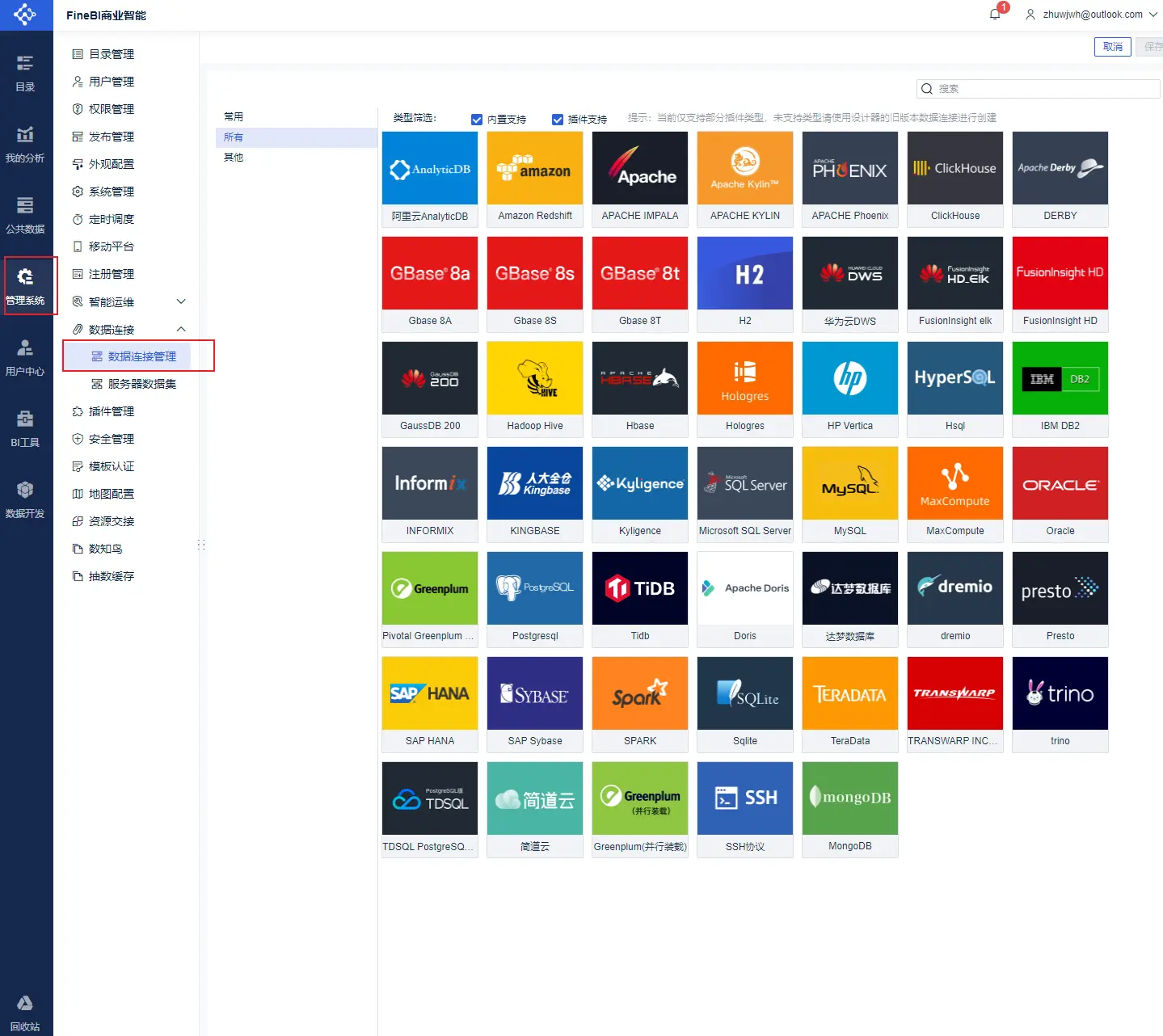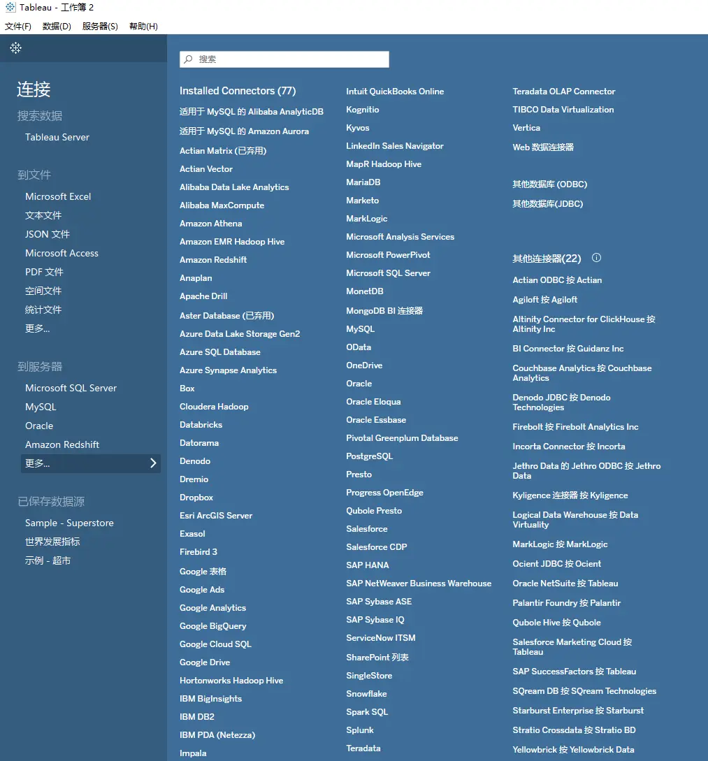 相比较Power BI,Tableau和FineBI支持的数据源更加丰富,比如JDBC驱动(阿里云Maxcomputer)、SAP BW、Essbase等。