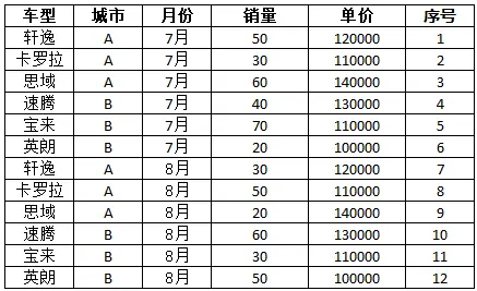 该表是分城市不同车型的销售情况。