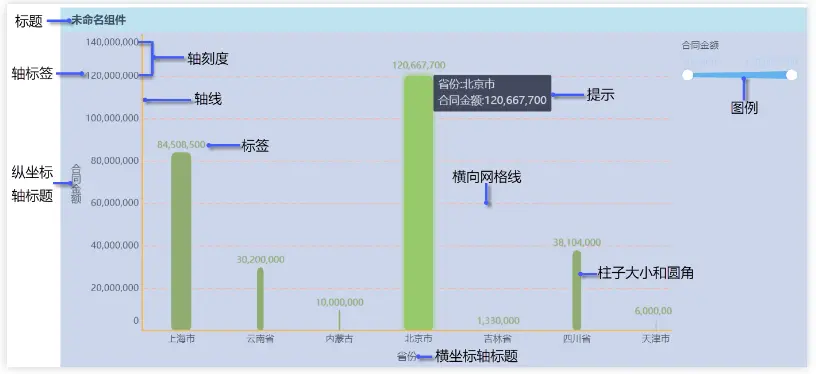 以FineBI为例 ,用户可在 图形属性、图形组件样式 中设置图表的颜色、标签、图例、网格线、背景等属性。