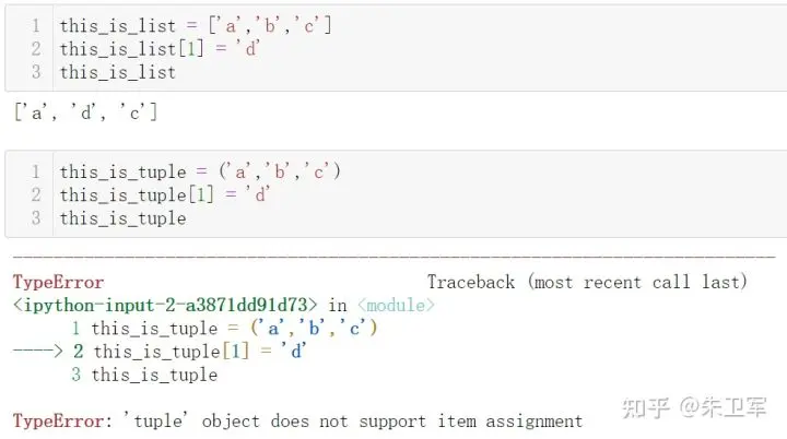 就是你不可以修改、增减tuple的值。 也因为 tuple 不可变的特性,所以没有append()、remove()、pop()等会更动值的操作。