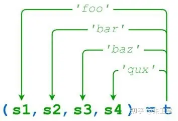 (s1, s2, s3, s4) = ('foo', 'bar', 'baz', 'qux')