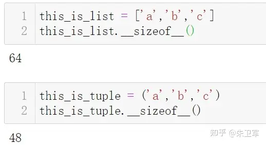 先看如下案例,存放同样的内容,元组的存储空间比列表要少16字节。