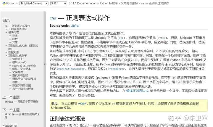 以正则表达式库-re为例,说明文档就像一本正则技术书,细节非常多。