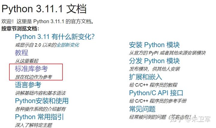 首先是python官方文档,这里有完备的标准库使用说明。不光是告诉你各种模块、函数传参方法,还给出了大量案例。