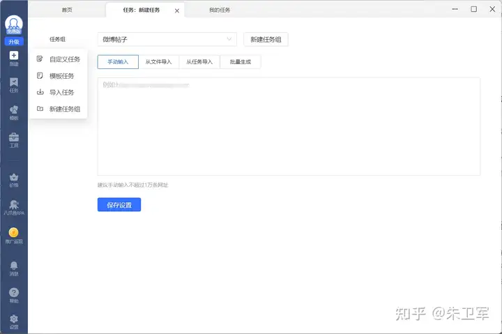 - 设置任务参数,包括采集规则、数据存储等