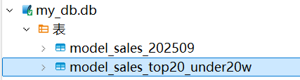 最后,表model_sales_top20_under20w成功出现在了SQLite数据库中。