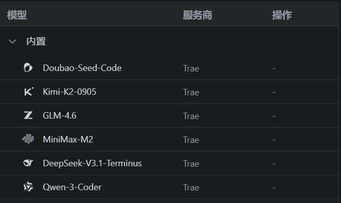 Trae还提供多种免费模型,不限制tokens,比如DeepSeek、Qwen、Doubao、Kimi等。