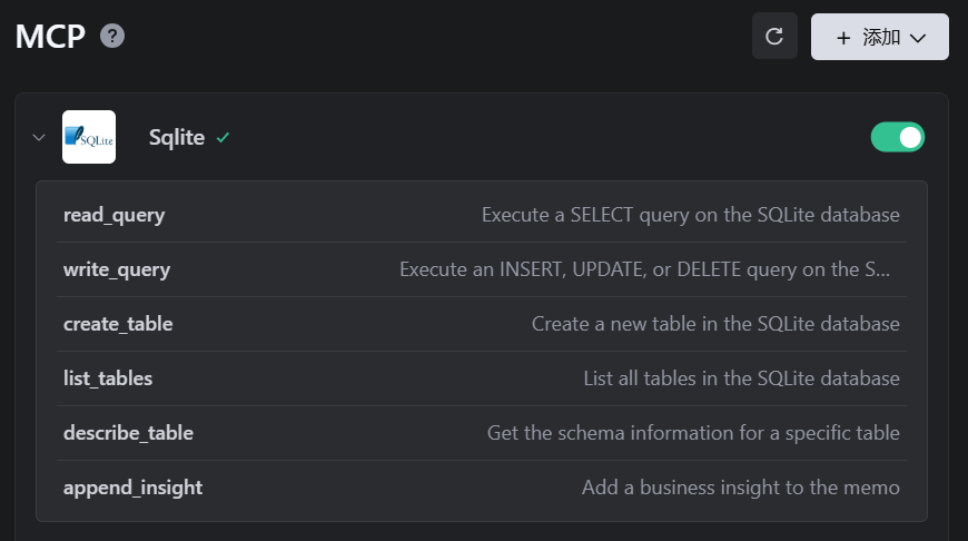 这样你就配置好了SQLite MCP服务,AI可以直接访问你的数据库文件。