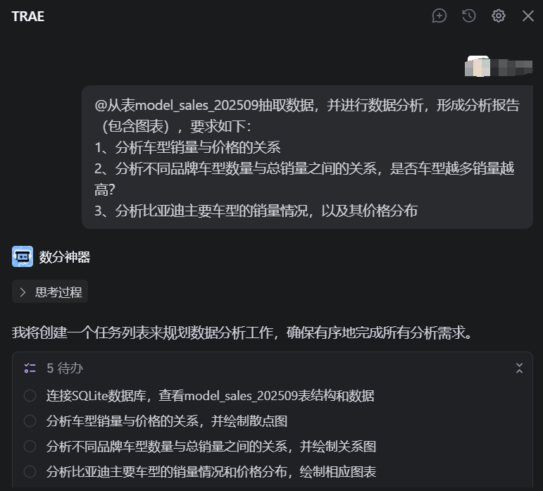 最近一直在摸索如何用AI解决实际的业务问题,发现AI在调用数据库和处理数据上有些发挥的空间,于是我做了一个自动化数据处理的智能体,名叫“数分神器”,有以下3个核心功能: