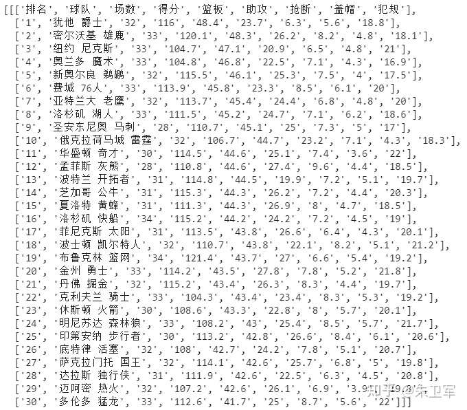 以NBA 2020-2021 常规赛数据作为范例,pdf表格如下:
