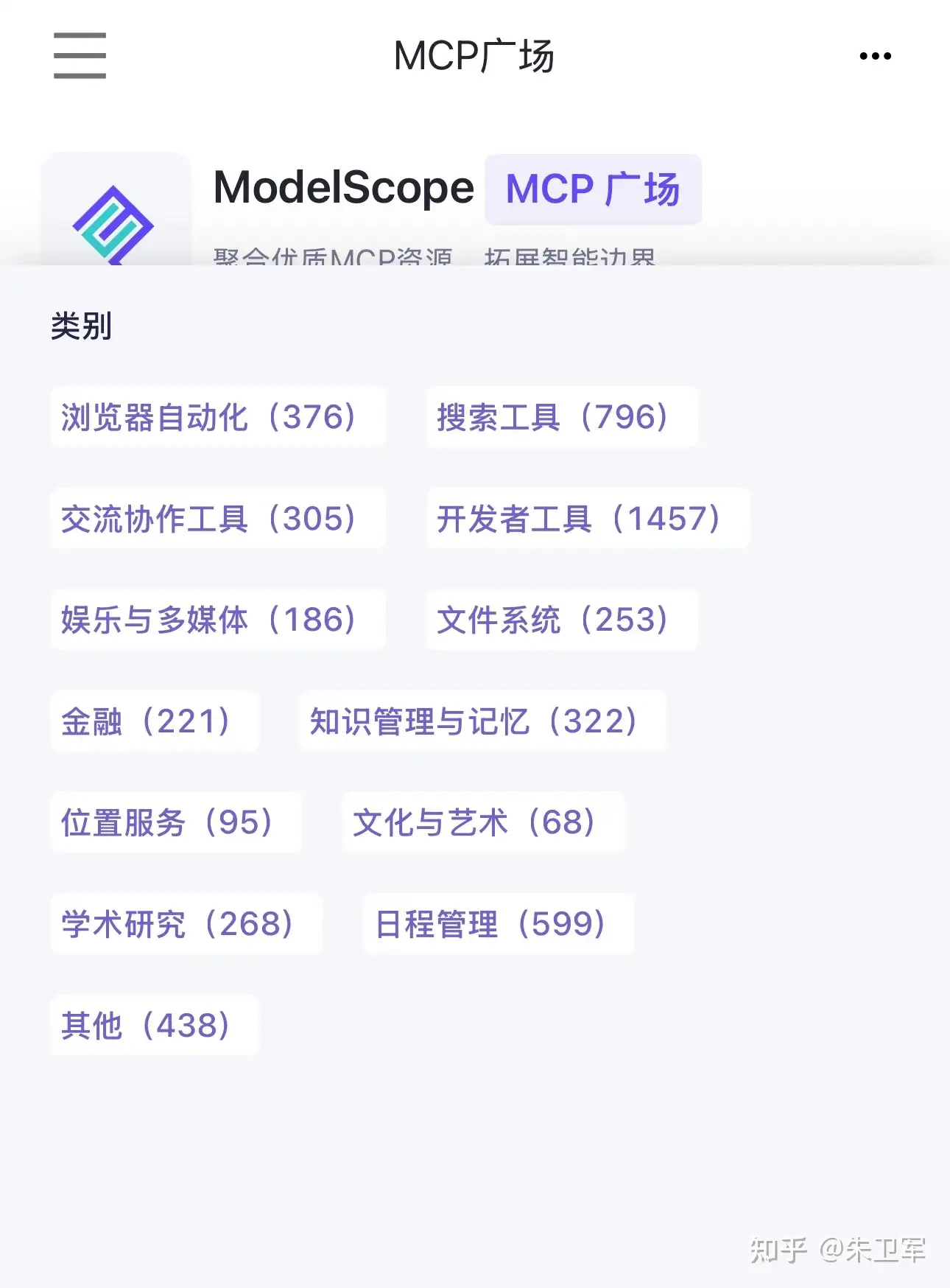 魔搭广场的MCP非常齐全,有点类似于GitHub的仓库,包括了开发者工具、搜索工具、日程管理、浏览器自动化等常用的MCP,应该有上千个。