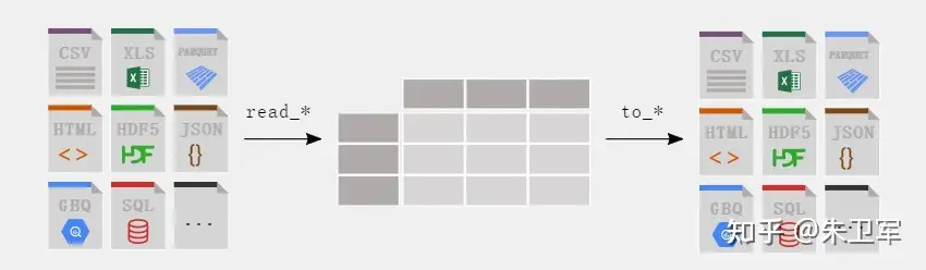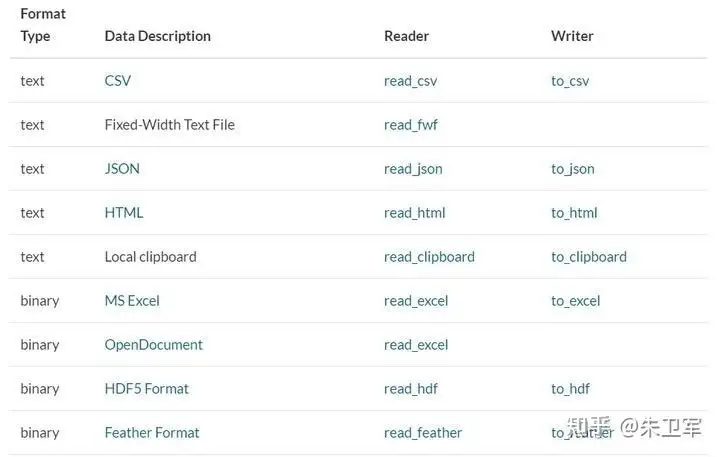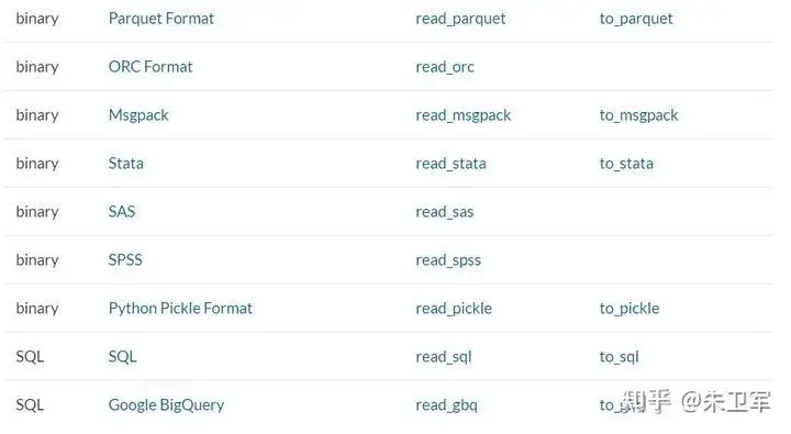 pandas支持读取和输出多种数据类型,包括但不限于csv、txt、xlsx、json、html、sql、parquet、sas、spss、stata、hdf5