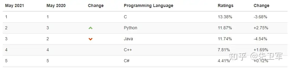 五月份TIOBE编程语言排行榜,Python追上Java又回到第二的位置。Python如此受欢迎一方面得益于它崇尚简洁的编程哲学,另一方面是因为强大的第三方库生态。