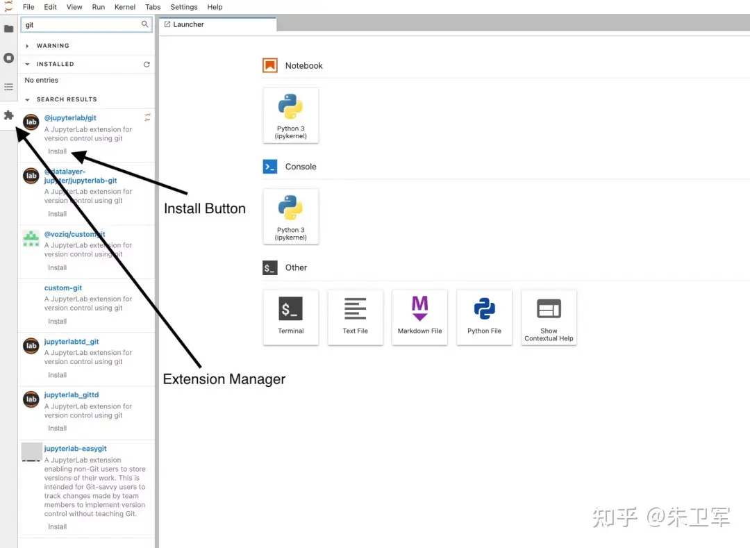 Jupyter还支持安装插件,和VsCode类似。插件类型也很丰富,包括了代码调试、可视化、文本编辑等等。