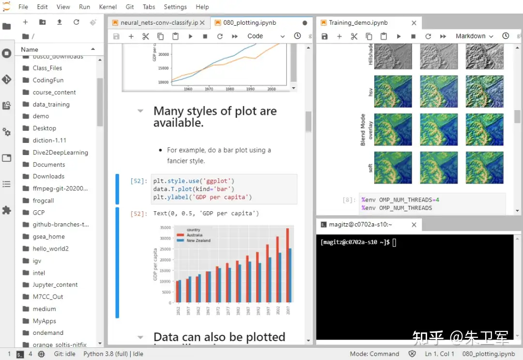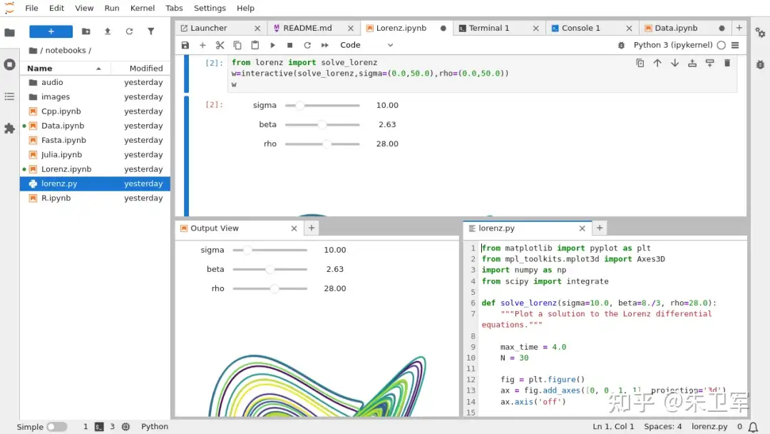 在产品上,Jupyter不仅有简洁的Notebook ,还有工作台式的Lab,甚至线上平台化部署的Hub,对个人、团队、企业都可以完美支持。