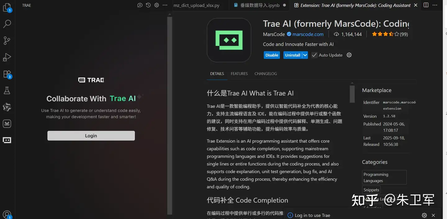 几乎每个AI编程模型都有vscode插件版,比如字节的Trae,你不用专门去安装桌面端也能在vscode上使用Trae AI来编程。