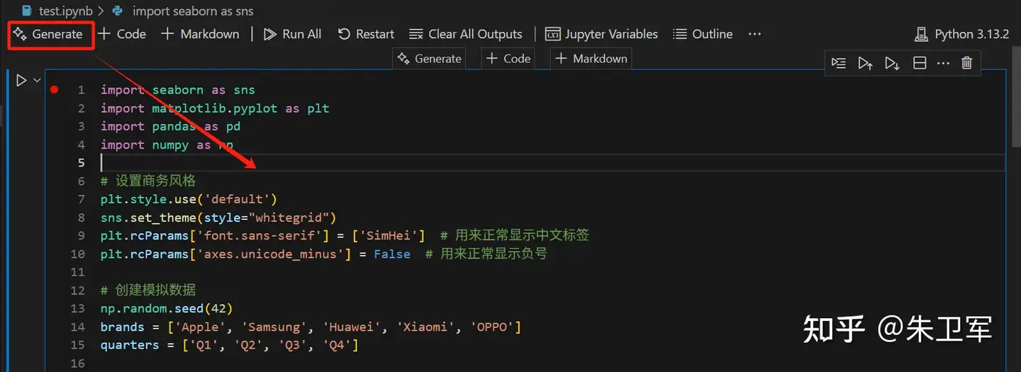 比如在notebook中使用seaborn绘制统计图表,可以使用AI生成代码,然后直接渲染展示。