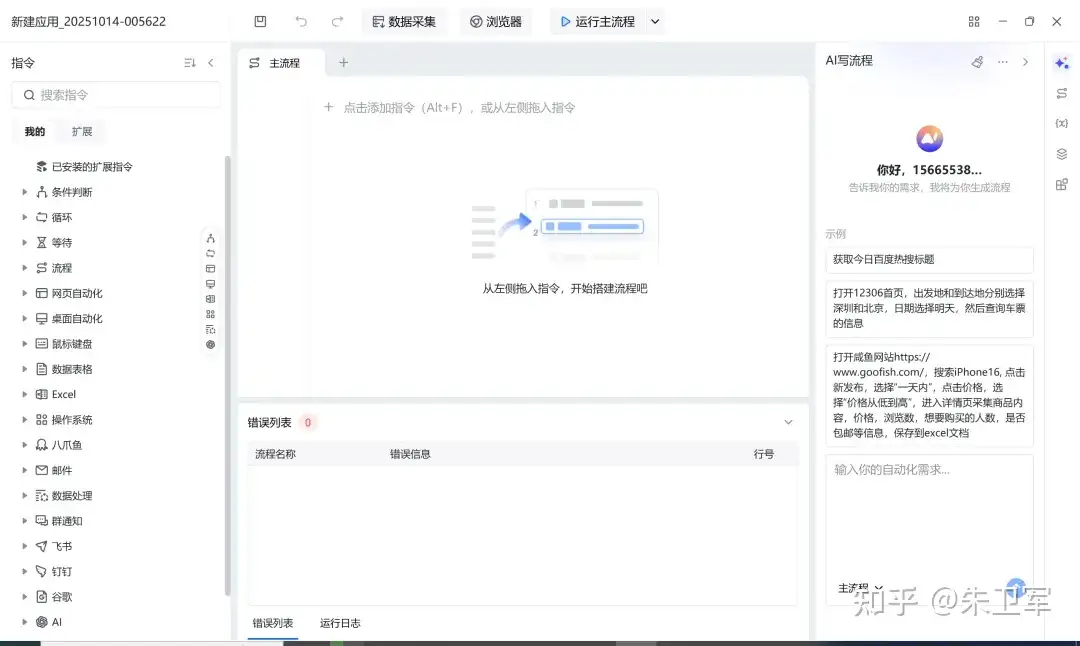 用AI写RPA流程其实就相当于Cursor做代码开发,不需要写代码,甚至不需要拖拉拽就可以实现自动化工作流,是一项非常有突破性的AI应用。