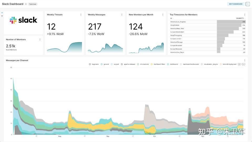 Superset是一个基于浏览器的开源BI应用,是Airbnb团队开发的,现在是Apache项目成员。和Tableau一样,Superset通过数据字段的拖拉拽实现可视化图表制作,并搭建看板。