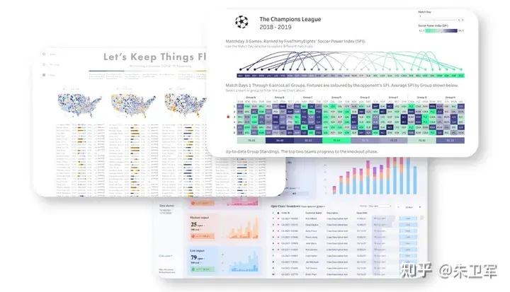 可以看到,tableau不仅能开发常规的业务数据监测看板,也能开发更丰富多元的可视化海报。