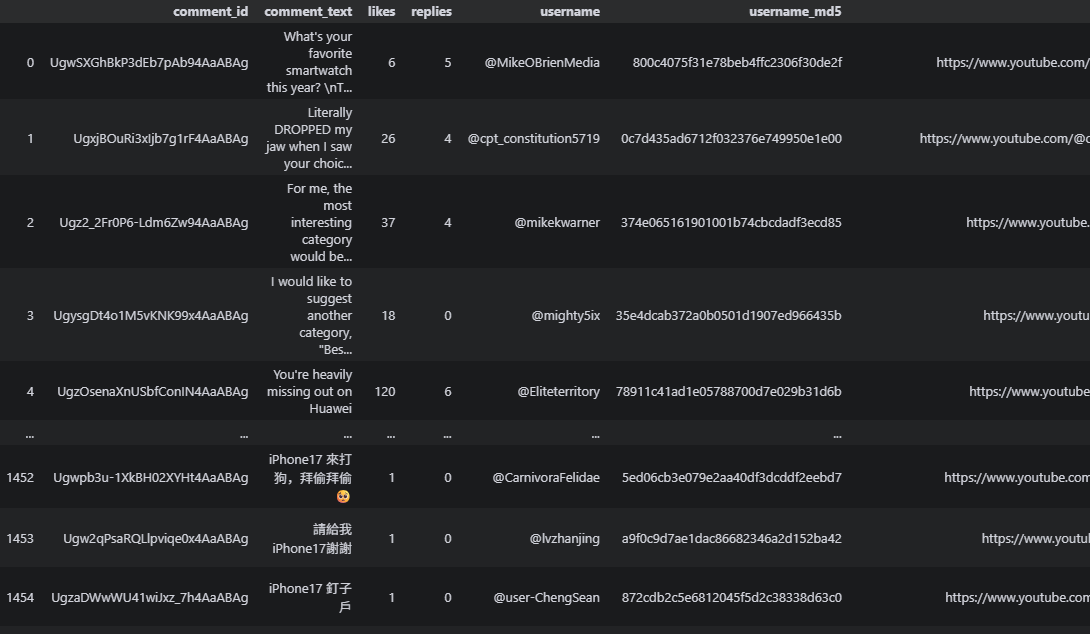 评论数据包含comment_id、comment_text、likes、replies等13个字段,非常详细。