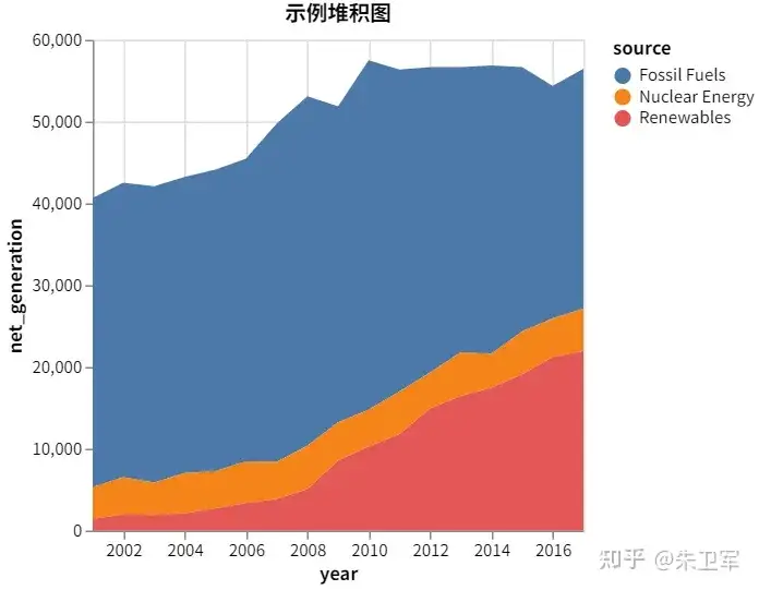 然后,你可以绘制一个堆积图,就知道Altair代码有多简单。