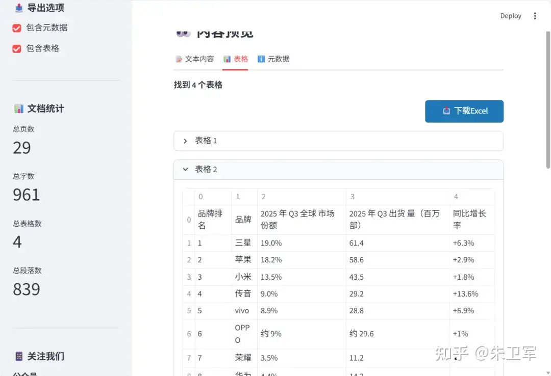 下面以一份PDF行业报告为例,咱们用这个工具去提取文本和表格,速度非常快。