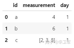 df1 = pd.DataFrame({'id':id, 'measurement':measurement, 'day':day})