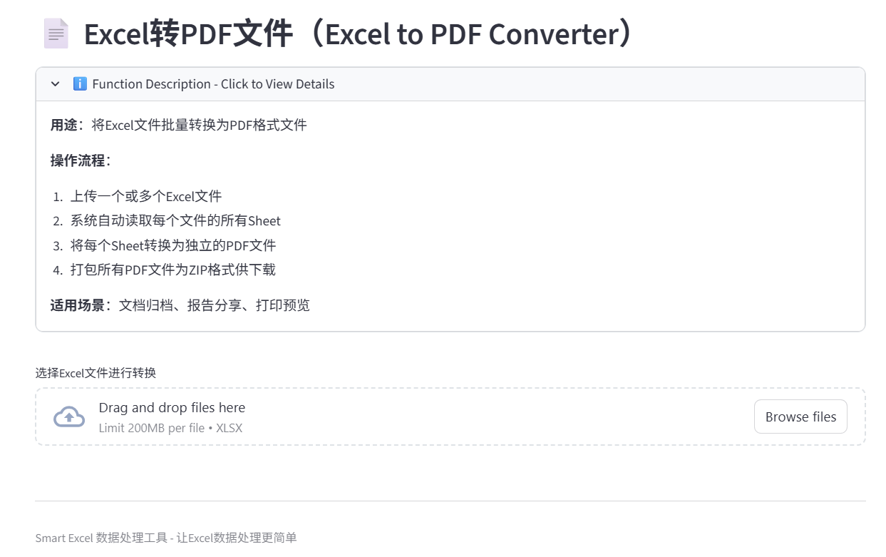 Excel批量转为PDF文件,导入多个Excel文件,它会把所有Excel的所有sheet都转为PDF文件,并且每个PDF都会以sheet命名。