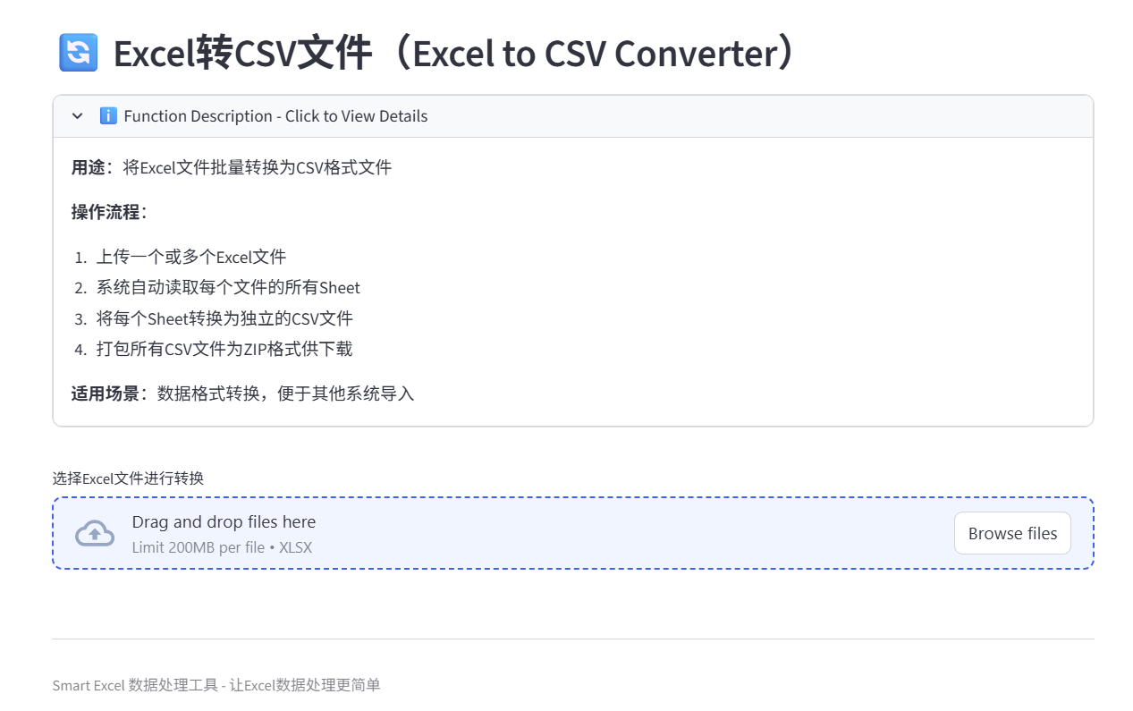 支持多个Excel表格和CSV表格进行格式互转。