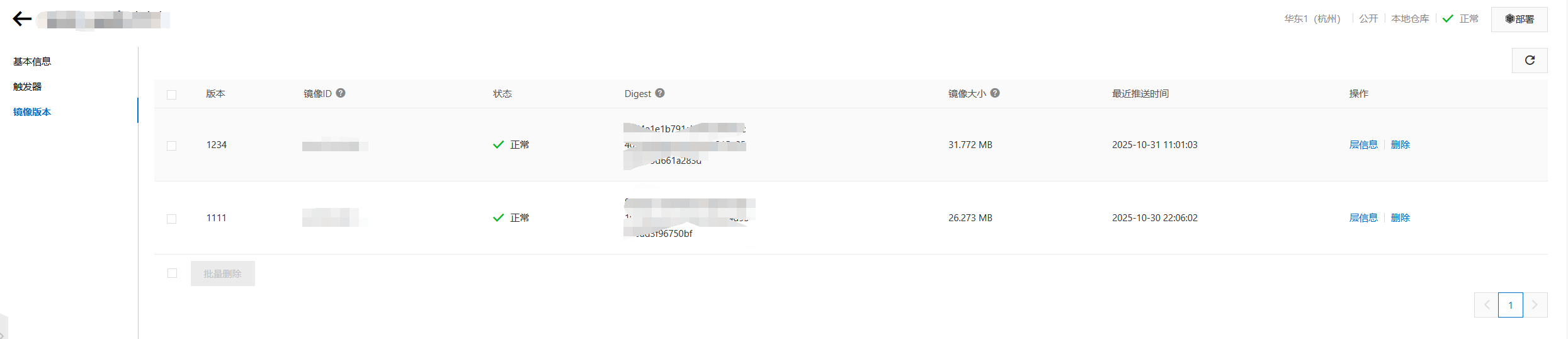 刷新镜像仓库页面,就可以看到镜像已经成功上传了
