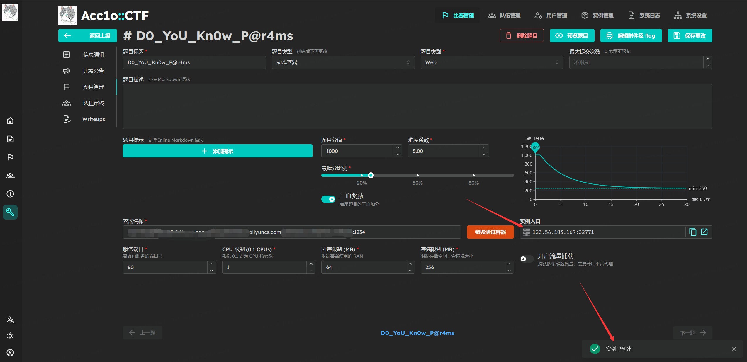 来到题目管理,新增题目,选择动态靶机,在容器镜像一栏中填写