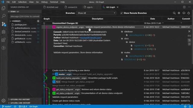 通过这个扩展,可以清楚地看见当前分支的commit记录和变化,可以通过按钮的方式轻易地创建、切换分支、cherry pick、merge等操作。