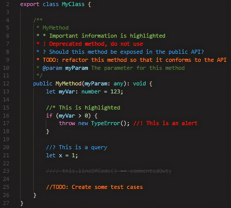 这是一个让你能更好地编写注释的工具,它能根据关键词用不同的颜色高亮代码片段。支持以下类型的高亮: