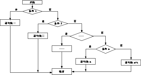 嵌套分支语句虽可解决多个入口和出口的问题,但超过3重嵌套后,语句结构变得非常复杂,对于程序的阅读和理解都极为不便,建议嵌套在3重以内,超过3重可以用下面的语句。